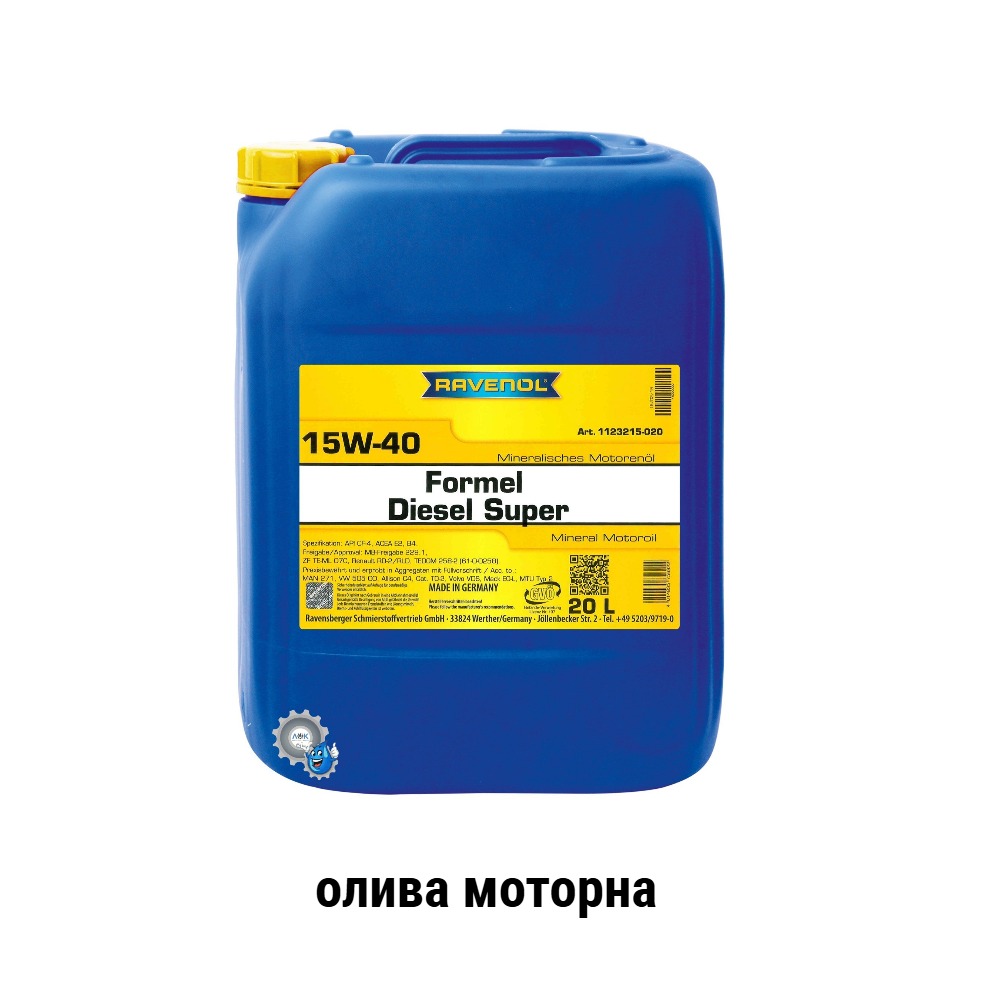 Мінеральна моторна олива Ravenol Formel Diesel Super 15w-40 для дизельних та турбодизельних двигунів вантажівок, автобусів, будівельної, сільськогосподарської, дорожньої та спеціальної техніки, що працюють у вкрай важких умовах за напруженого графіка роботи, що використовують паливо з підвищеним вмістом сірки.